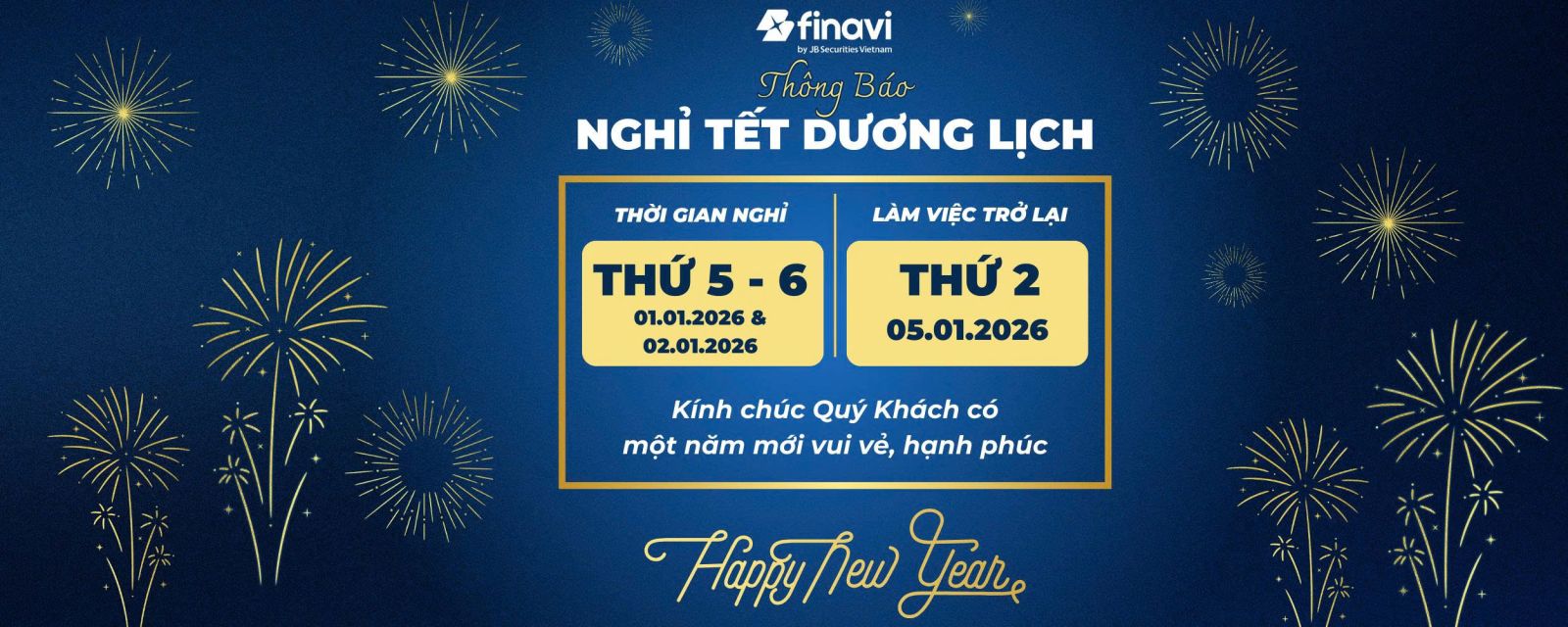 Thông báo ngừng giao dịch và nghỉ Tết Dương lịch 2026